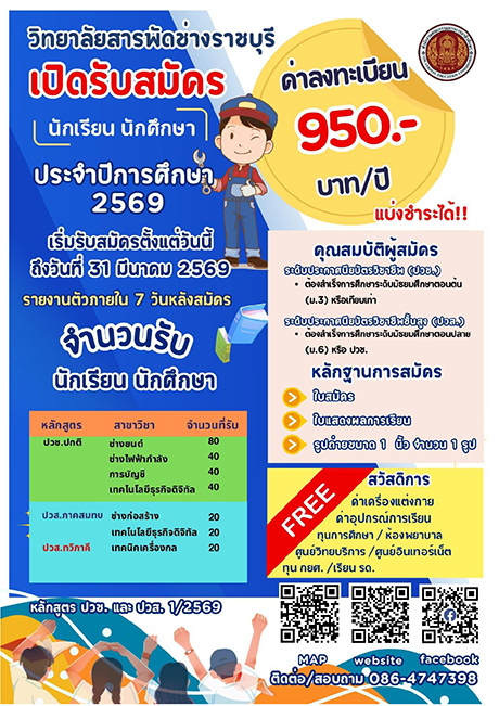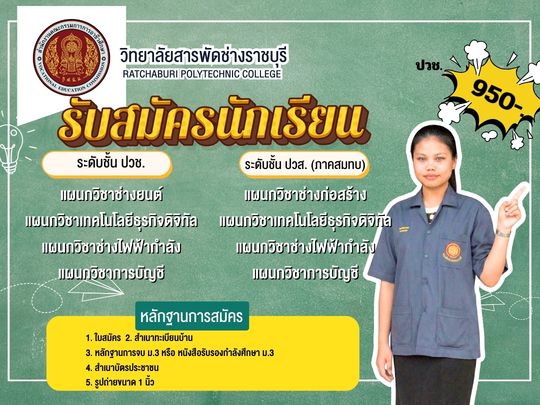 ยินดีต้อนรับเข้าสู่เว็บไซต์ วิทยาลัยสารพัดช่างราชบุรี